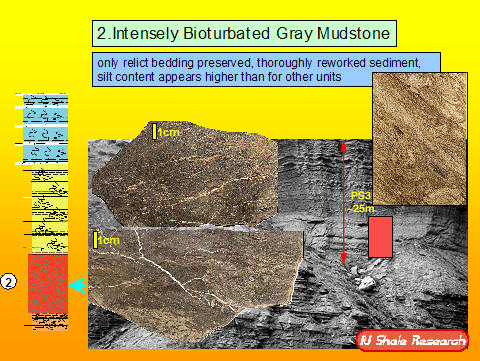 intensely bioturbated mudstone (burrow mottling is prevalent