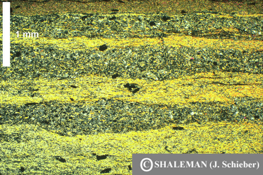deep water. For further information consult a publication from 1990. Schieber, J., 1990, Sedimentary structures, textures, and depositional settings of shales from the Lower Belt Supergroup, Mid-Proterozoic, Montana, U.S.A.: In: Microstructure of Fine-Grained Sediments: From Mud to Shale, (eds. R.H. Bennett, W.R. Bryant, M.H. Hulbert), p. 101-108, Springer Verlag. Link |