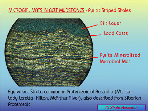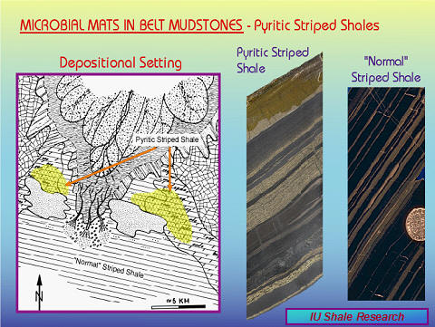 The recognition of "striped shales" in various other Mid-Proterozoic successions indicates that offshore benthic mats were a vital part of Proterozoic ecology and important for the formation of carbonaceous shales and potential source rocks. |
